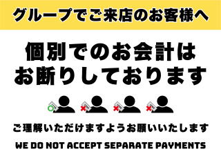 当店では個別でのご精算はお断りさせていただいています。